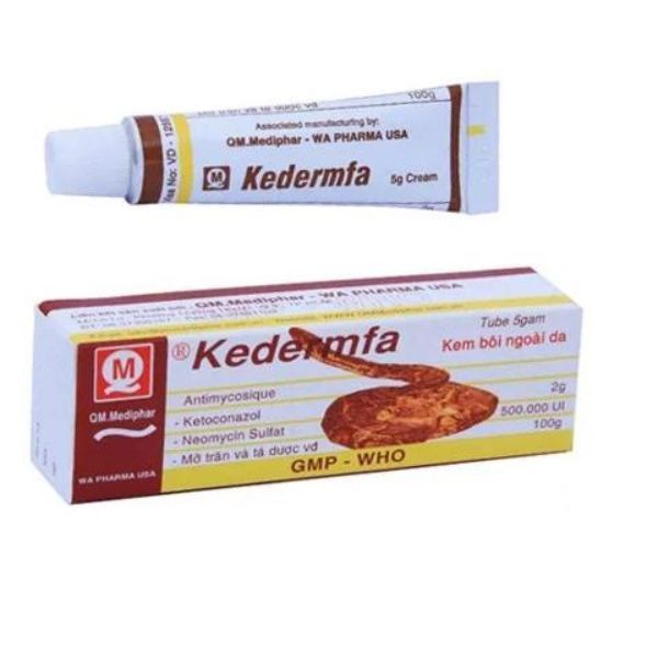 Kedermfa 5g là loại thuốc điều trị tại chỗ nấm da kèm nhiễm khuẩn thứ phát: Nấm da chân, da đùi, da toàn thân, nấm móng, lang ben có chất lượng tốt đang được bán rộng rãi tại các nhà thuốc trên toàn quốc.