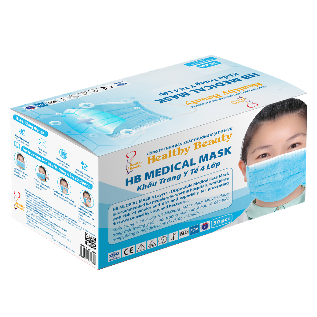 ✔️KHẨU TRANG Y TẾ 4 LỚP KHÁNG KHUẨN MÀU XANH HB MEDICAL MASK hộp 50 cái là một loại khẩu trang tốt nhất thời điểm hiện tại, bởi tính hiệu quả cũng như các giấy chứng nhận an toàn, làm cho người dùng an tâm khi sử dụng.