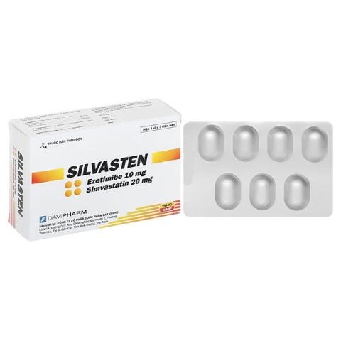 Viên SILVASTEN là dạng viên kết hợp chứa simvastatin 20 mg/ezetimibe 10mg, được sử dụng để thay thế viên simvastatin 20mg và ezetimibe 10mg riêng lẻ hoặc được dùng để phổi hợp thêm ezetimibe khi điều trị bằng simvastatin 20mg không đạt được mục tiêu điều trị. SILVASTEN không thích hợp với chỉ định điều trị với liều lượng khác.