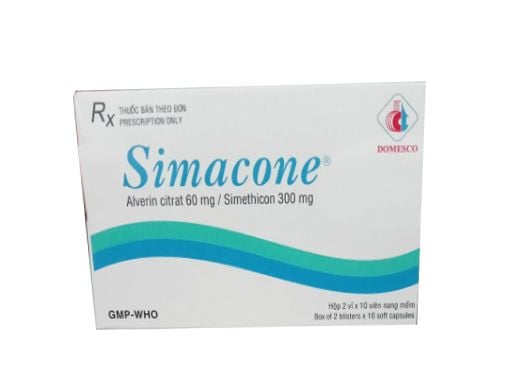 Simacone là loại thuốc điều trị co thắt cơ trơn trong các bệnh lý như hội chứng ruột kích thích, bệnh đau túi thừa của đại tràng và chứng đau bụng kinh nguyên phát. . có chất lượng tốt đang được bán rộng rãi tại các nhà thuốc trên toàn quốc.