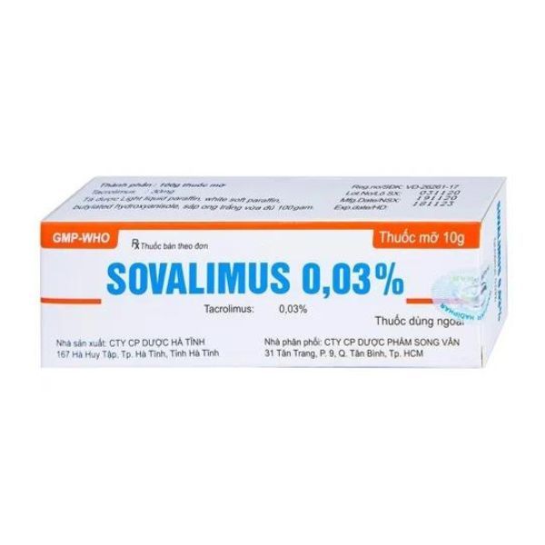 Sovalimus 0.03% là loại thuốc trị chàm cơ địa mức độ vừa và nặng có chất lượng tốt đang được bán rộng rãi tại các nhà thuốc trên toàn quốc.