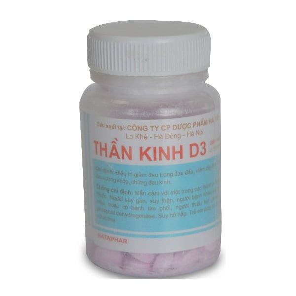 Thần kinh d3 là loại thuốc iảm đau trong đau đầu, viêm dây thần kinh, đau xương khớp, chứng đau kinh có chất lượng tốt đang được bán rộng rãi tại các nhà thuốc trên toàn quốc.
